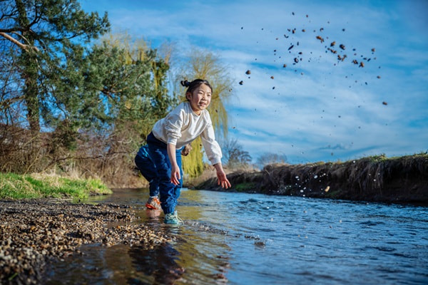 I jump through puddles, run across meadows and climb the highest trees and hills! Sometimes I'm an explorer, sometimes a superhero - alone or with my friends. Look at my shoes! They're not just super cool, they jump and run with me! They're like my best friend who's always with me on my adventures. My shoes are just great.